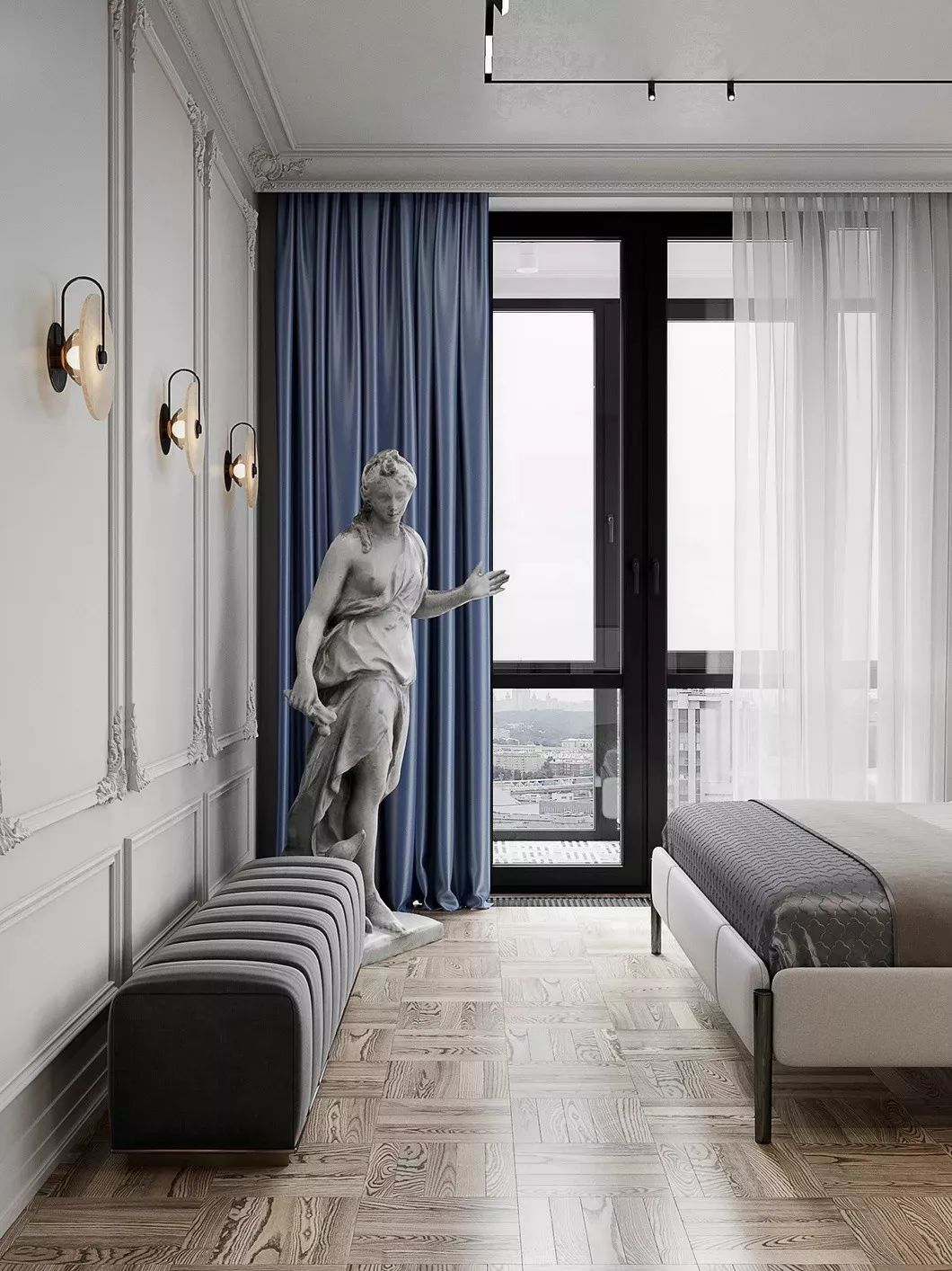 色彩搭配可以将灵魂注入家居空间,使整个空间充满灵气和风格,如灰色调和蓝色调,一种是绅士的优雅,另一种是骨子里高贵典雅的气质。将这两种颜色融入卧室设计将为你的家增添无穷魅力。