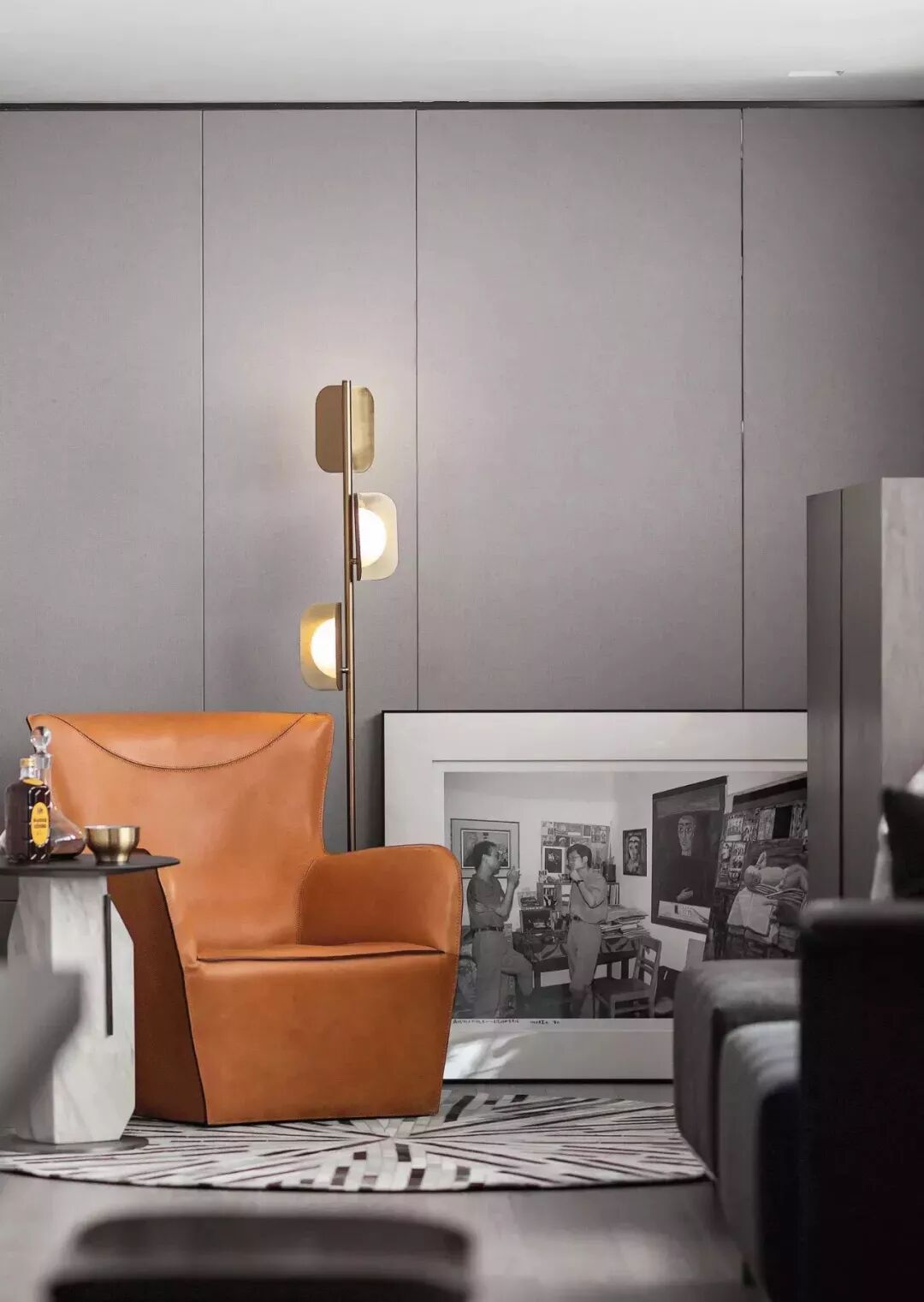 高档灰褐色,低调高档感。棕色本身是一种中性颜色,当与高级灰放在一起时不是很明显,但它可以避免空间的单调,不留痕迹。棕色家具沉稳而安静,就像一幅无言的艺术品,等待你静静地看着,细细品味。