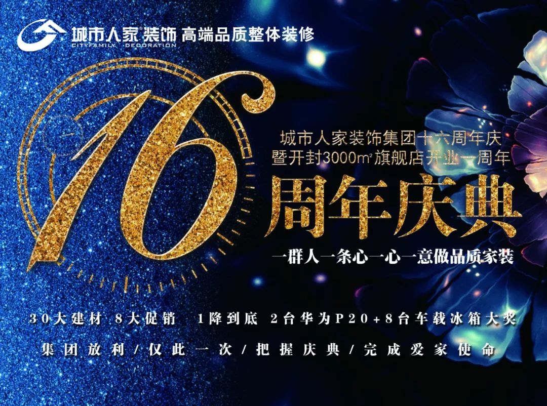 城市家庭装饰集团16周年庆典正在如火如荼地进行中!详情请致电!