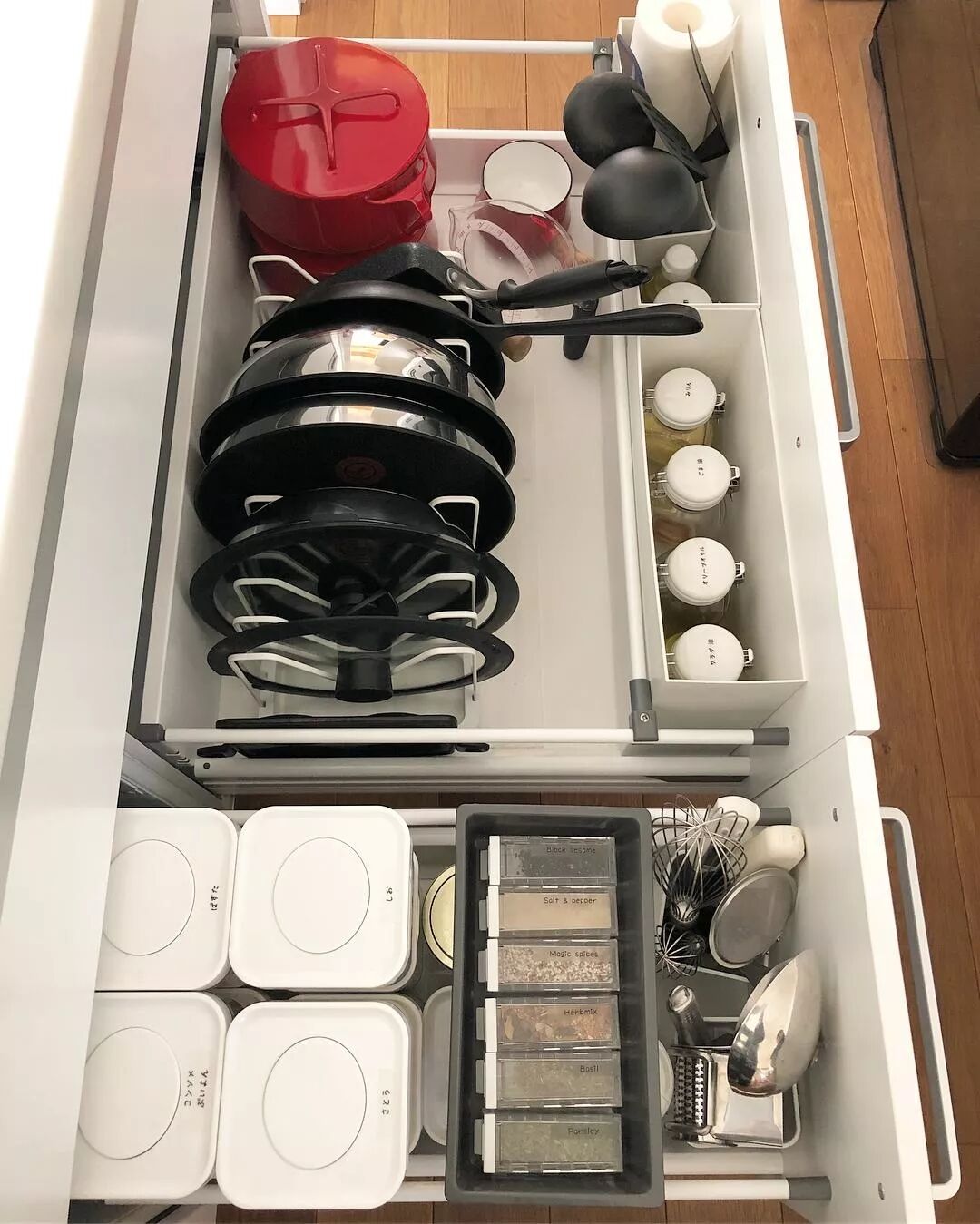厨房里的两个橱柜有很强的容纳能力,可以容纳很多东西。因此,在设计之初就应该考虑存储问题。