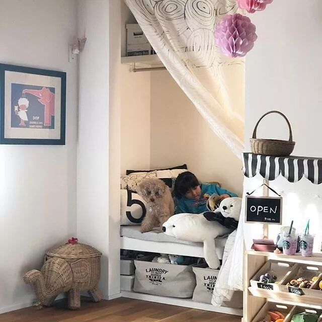 这是一个临时儿童房。当女儿长大后,那将是她的衣橱。现在,我女儿对这个睡觉的地方感到非常满意。