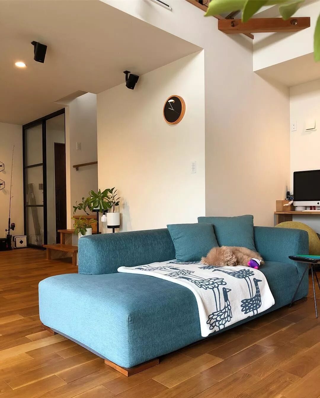 我最喜欢的是这款定制沙发的颜色、色彩和面料都有一种超前的感觉,提升了这个客厅的档次。