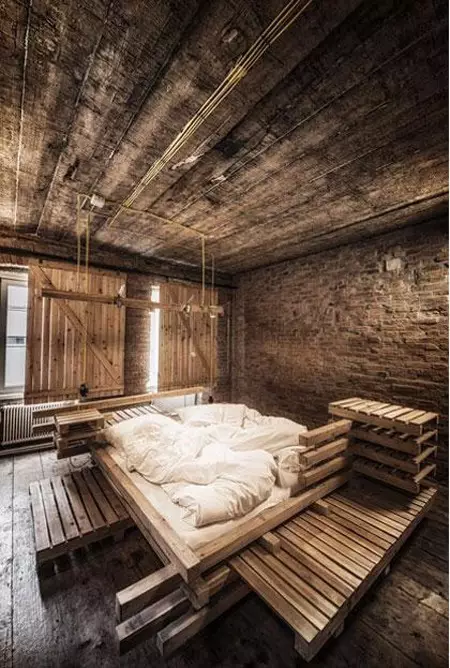从整体空间来看,这间卧室能给人一种强烈的自然氛围。无论是从砖墙设计到木地板还是天花板,设计师都只是将木质森林元素贯彻到底。他想尽一切办法让居民们睡在家里,感受森林的气息。边肖看到这个的时候已经完全醉了。我不知道是否有木头人喜欢这种卧室设计。