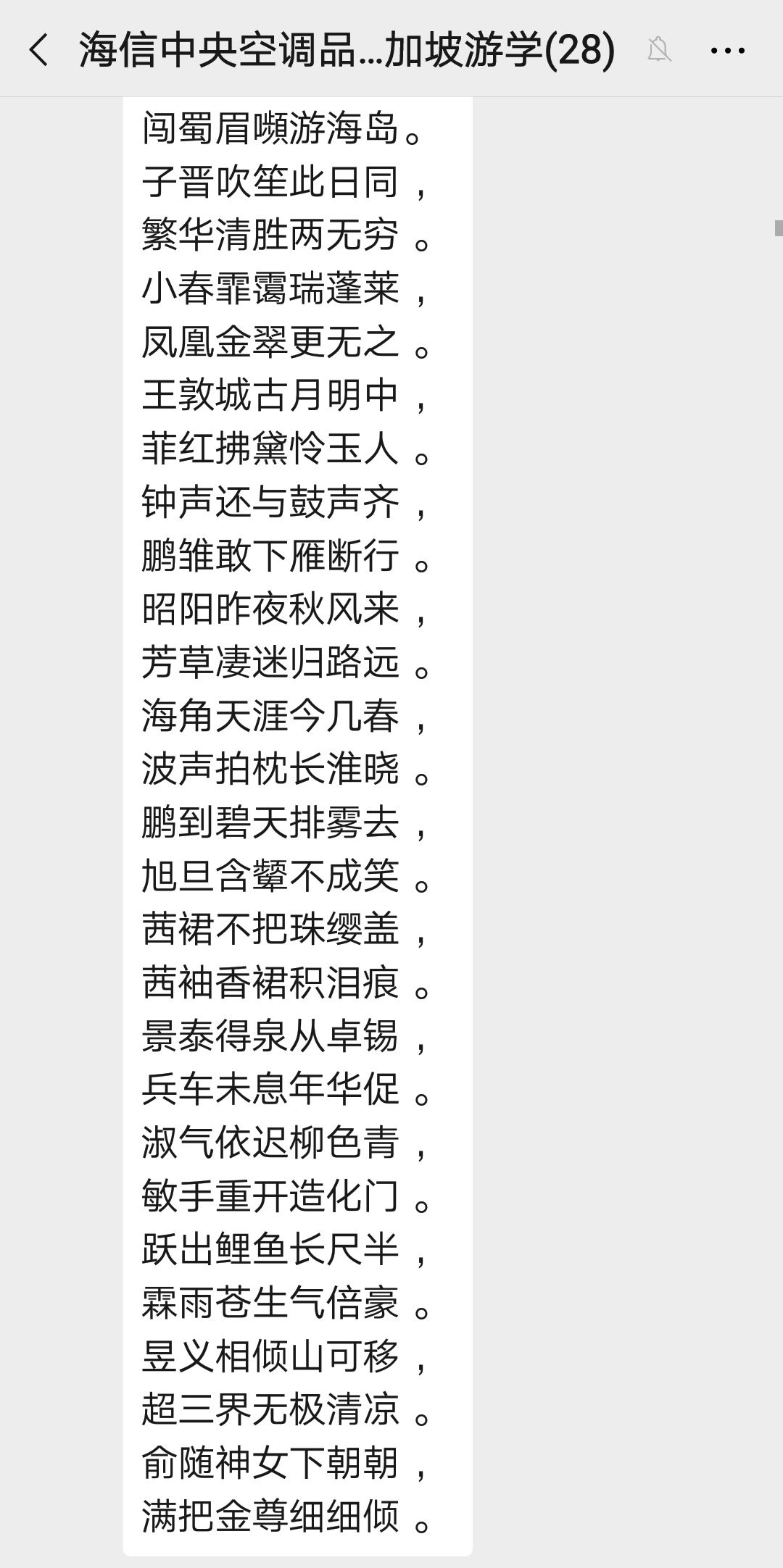 通过参观和交流,我了解了自然和社会,提高了我对当地风土人情的认识,让我在旅行中学习和思考。感谢海信让我带着喜悦和憧憬去美丽的新加坡开展学习和交流活动,深入体验新加坡的自然、科技、人文等方面,收获颇丰。